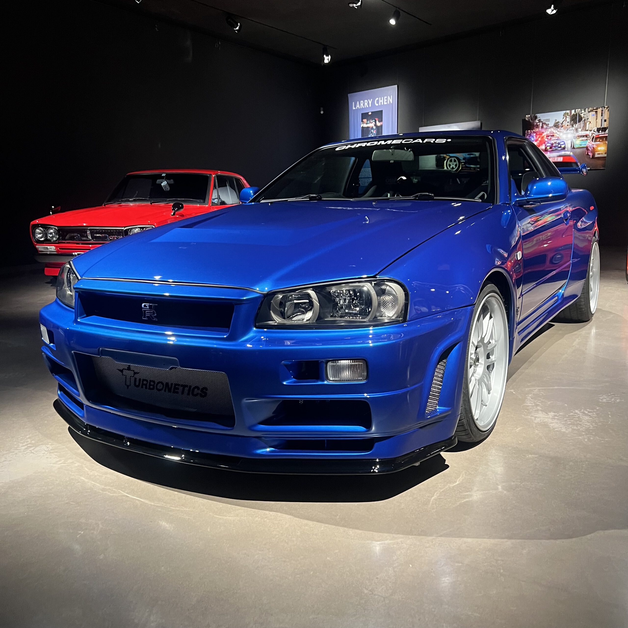 Das ausgestellte Fahrzeug ist das originale Fahrzeug, welches von Paul Walker alias „Brian O’Conner“ in Teil 4 der Filmreihe gefahren wurde und stellt in seiner Bayside Blue-Lackierung eines der markantesten und legendärsten Fahrzeuge der gesamten Filmreihe dar. Für viele Fans ist dieser blau Nissan Skyline R34 der Inbegriff des Fast-&-Furious-JDM-Cars.